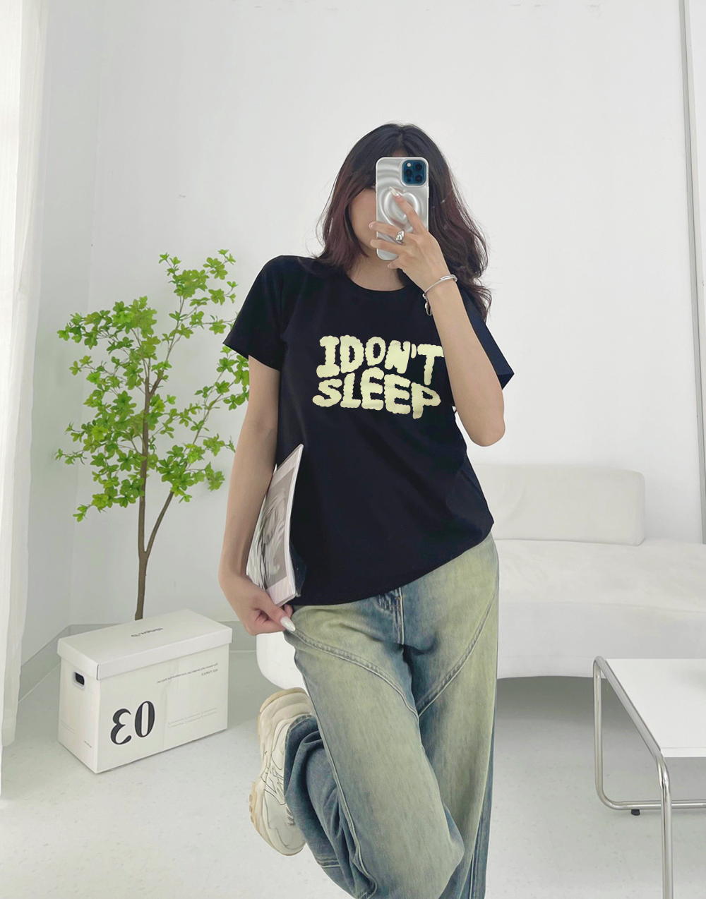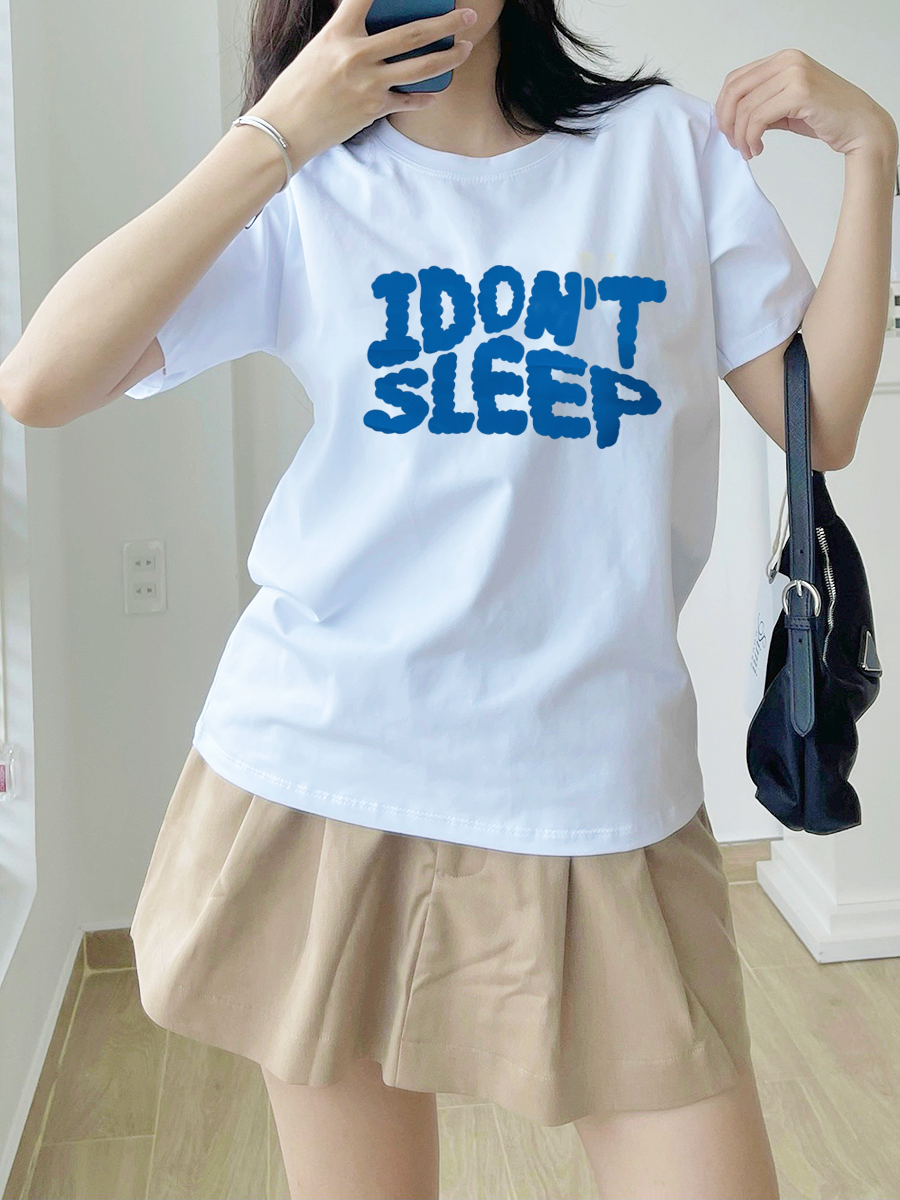 Shop sỉ áo Thun Nữ Cổ Tròn In Chữ I Dont Sleep Size M(40-60kg)