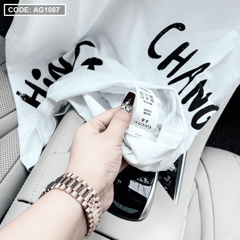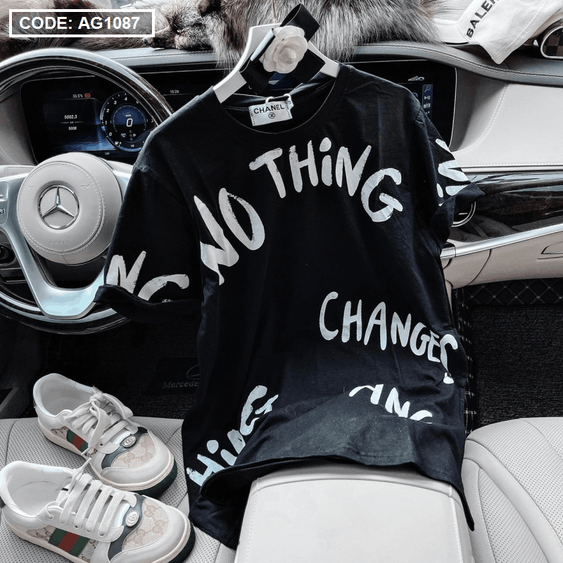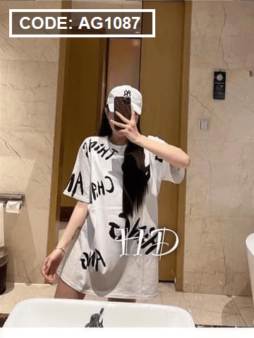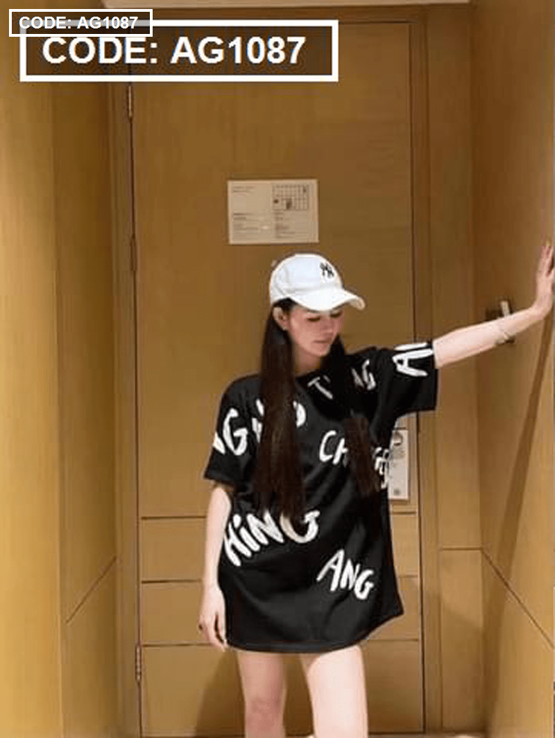 Áo thun nữ in chữ form rộng thun quảng châu