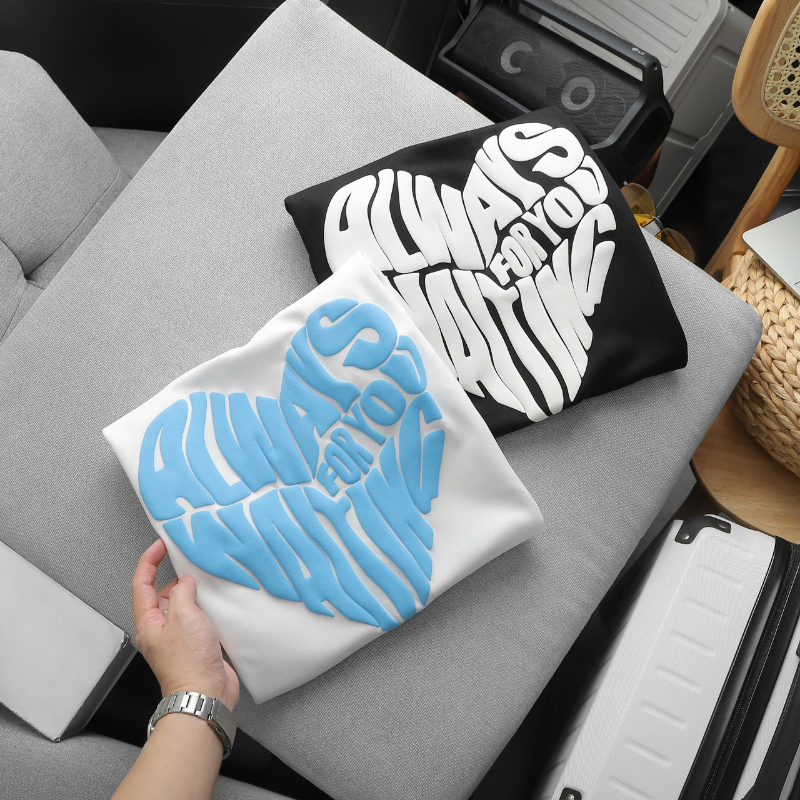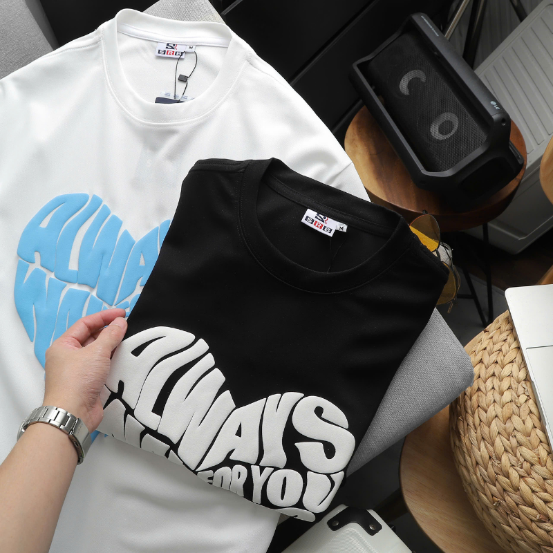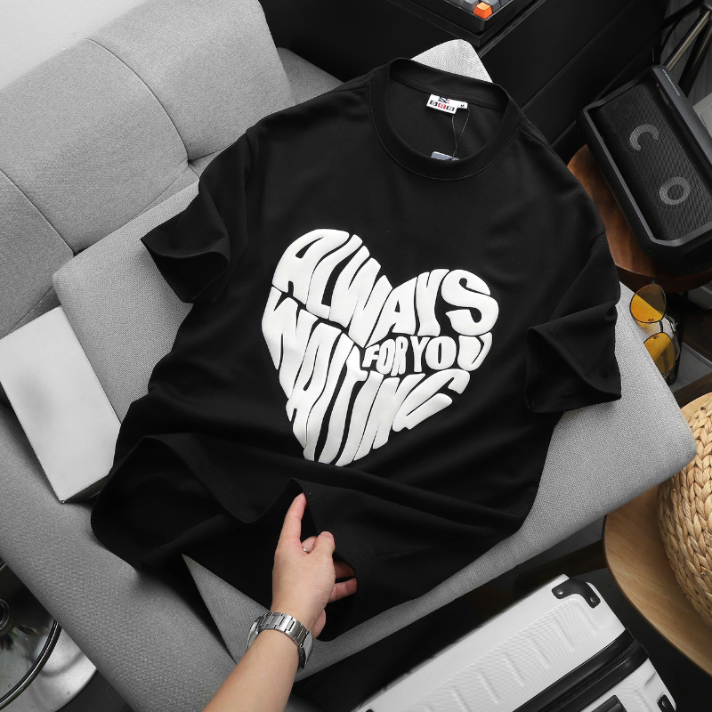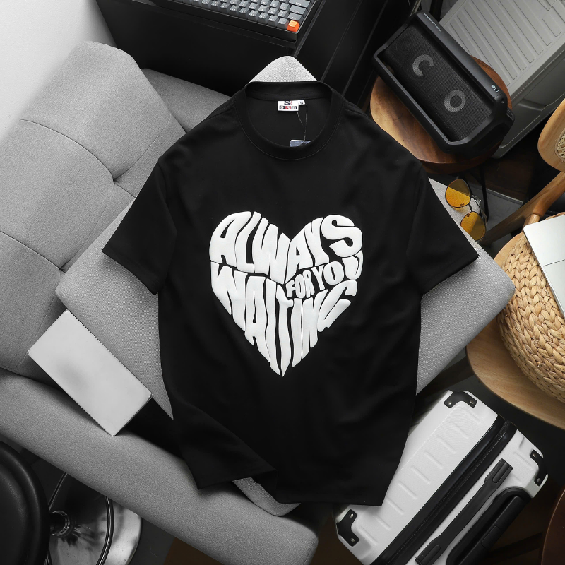 - Họa tiết: Hình trái tim cách điệu chữ “ALWAYS WAITING FOR YOU” in nổi 3D siêu xịn, cá tính nhưng không kém phần dễ thương.