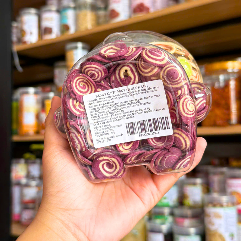 Chuyên sỉ shop sỉ bánh tai heo mix 3 vị (caramel, khoai môn, trà xanh) 400g thơm ngon – hũ gấu lớn giá gốc tại TPHCM