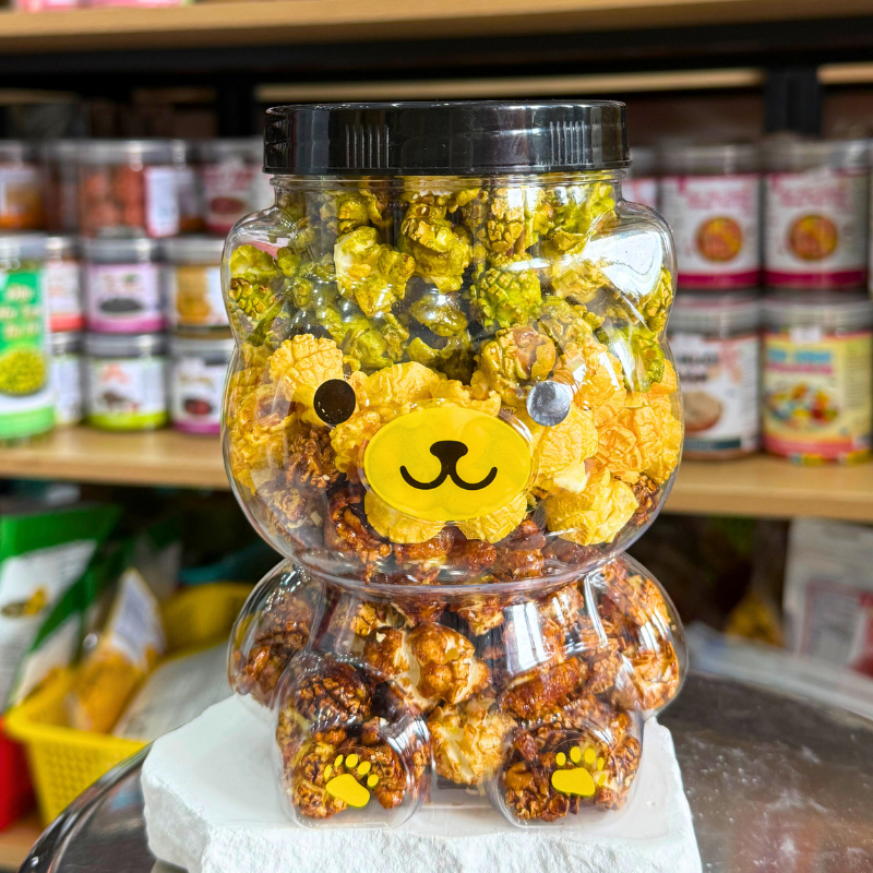 Shop sỉ bắp Rang Bơ Mix 3 Vị (Truyền Thống, Trà Xanh, Socola) 230g – Hộp Gấu Lớn