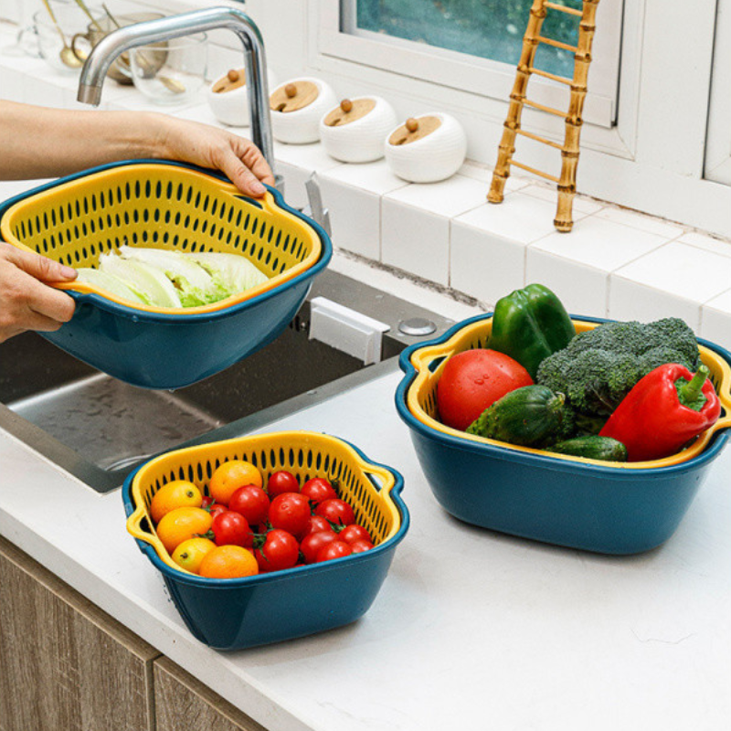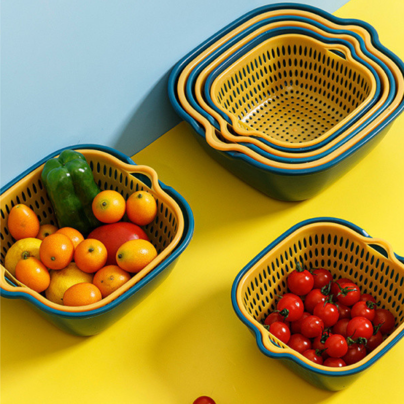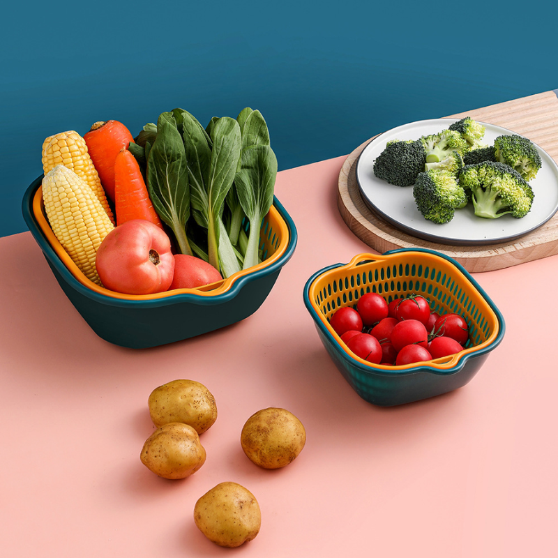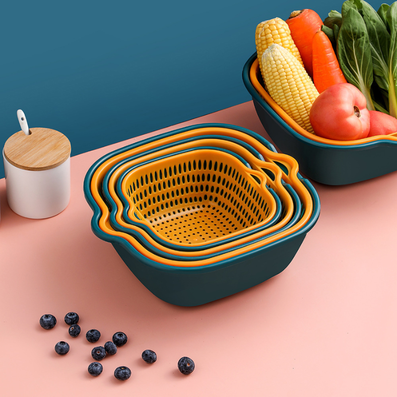 Cung cấp sỉ shop sỉ bộ rổ 6 món kèm chậu chất liệu nhựa cao cấp – bộ thau rổ đựng rau củ quả 25x25x10cm, 21x21x8cm, 17x17x7cm chất lượng tốt giá tận gốc