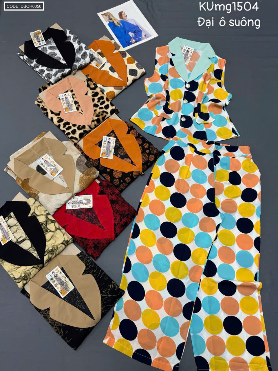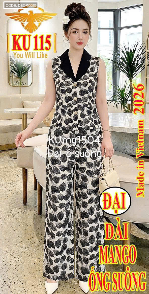 Cung cấp sỉ shop sỉ đồ bộ nữ áo sát nách cổ vest quần ống suông kumg1504 chất lượng tốt giá tận gốc