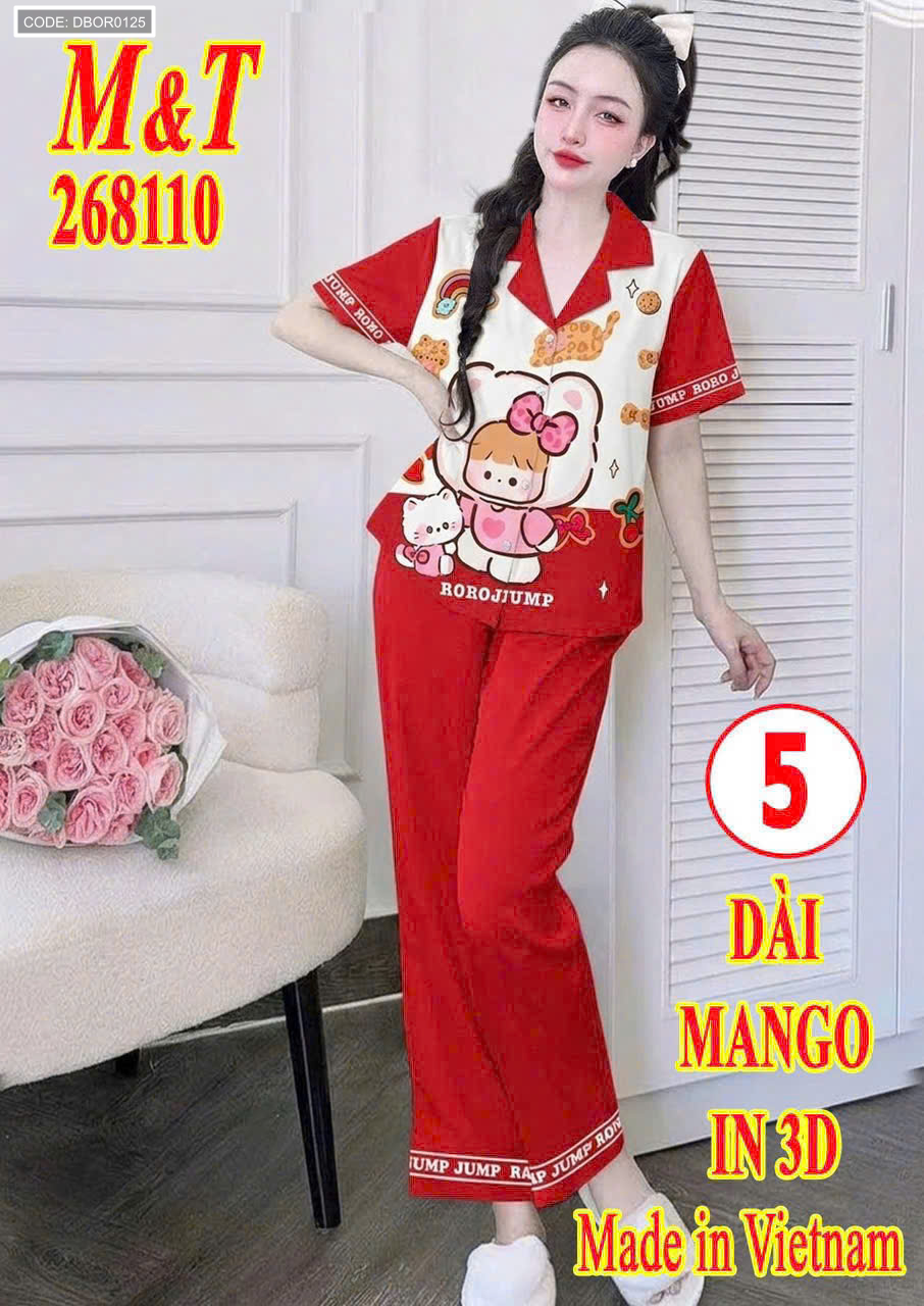 Bán sỉ shop sỉ đồ bộ nữ oijama tay ngắn quần dài dài mango in 3d mt-68110 giá rẻ trên toàn quốc