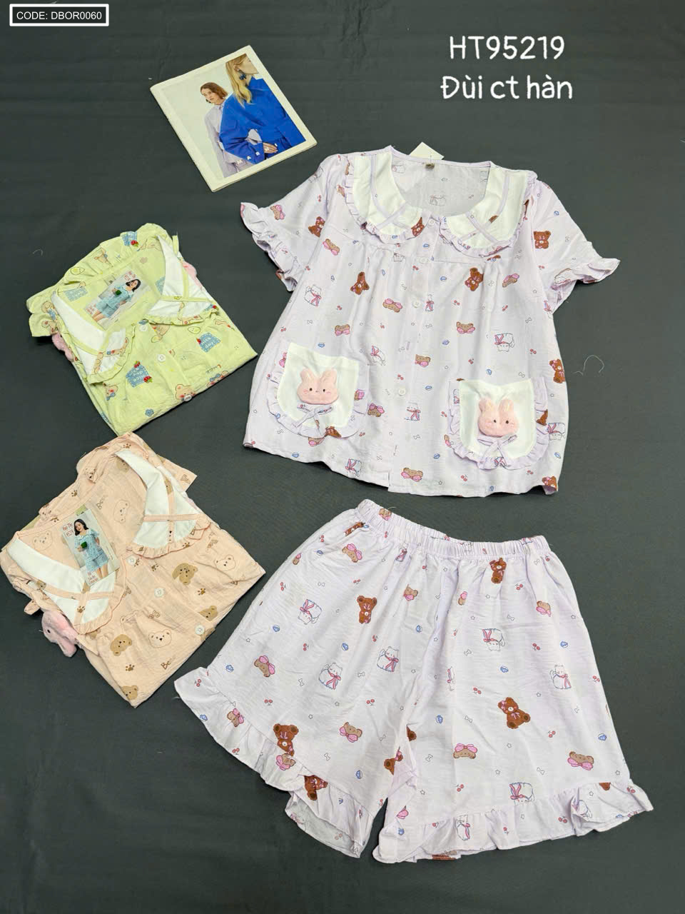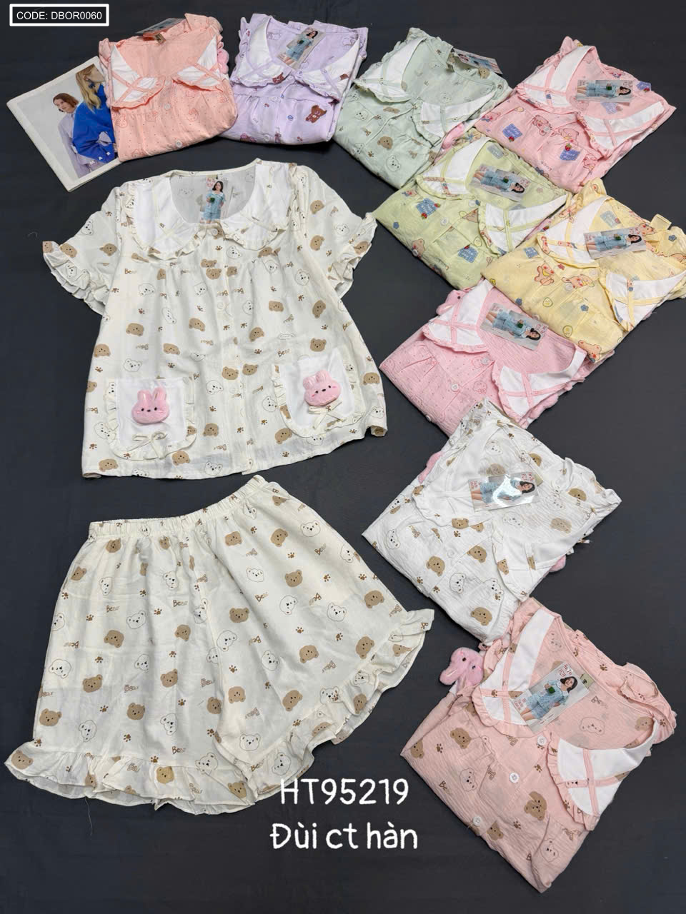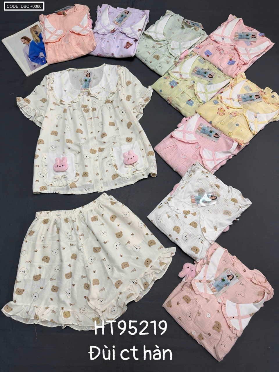 Shop sỉ đồ bộ nữ quần đùi tay ngắn đũi cotton hàn HT95219
