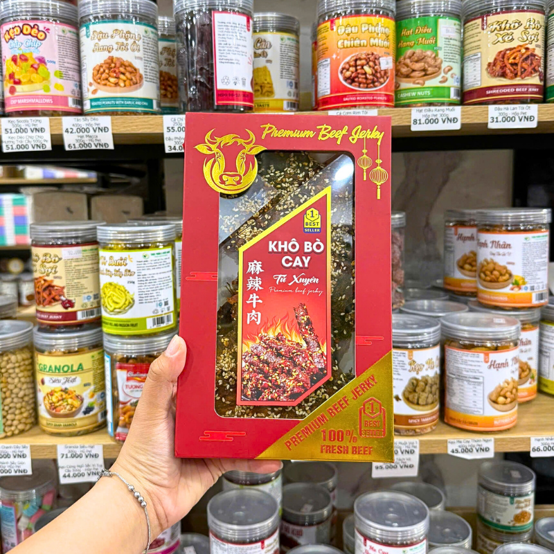 Chuyên sỉ shop sỉ khô bò cay tứ xuyên premium beef gerky 500g giá gốc tại TPHCM