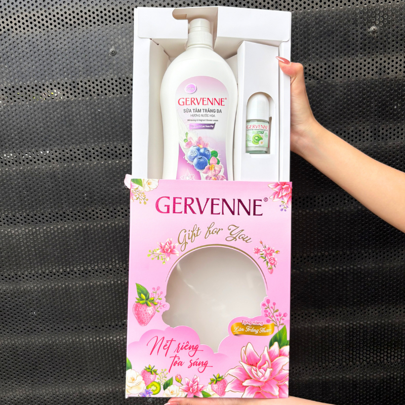 Shop sỉ set Quà Tặng Sữa Tắm Trắng Da Hương Nước Hoa Gervenne & Lăn Khử Mùi Gervenne