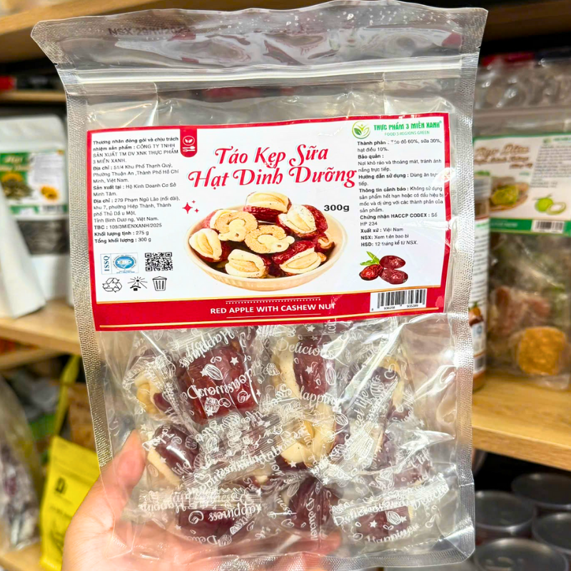 THÀNH PHẦN: Táo đỏ, hạt điều, kẹo sữa
