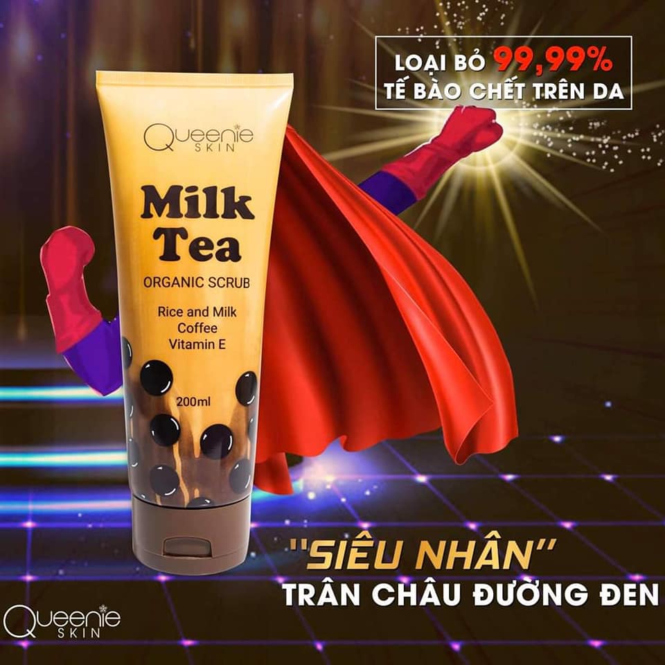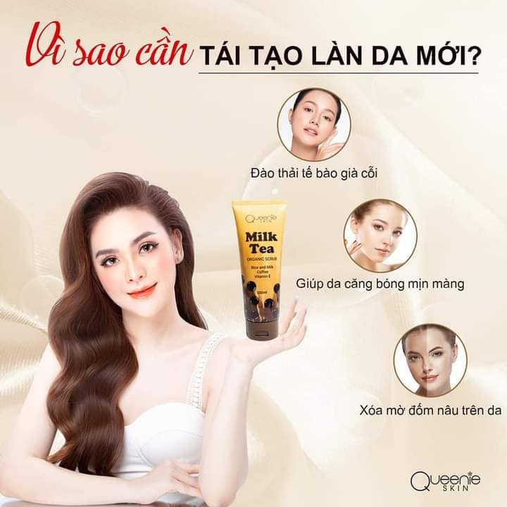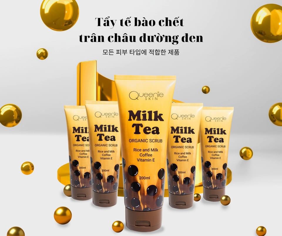 – Phân phối sỉ tẩy tế bào chết Milk Tea trân châu đường đen Queenie Skin chính hãng