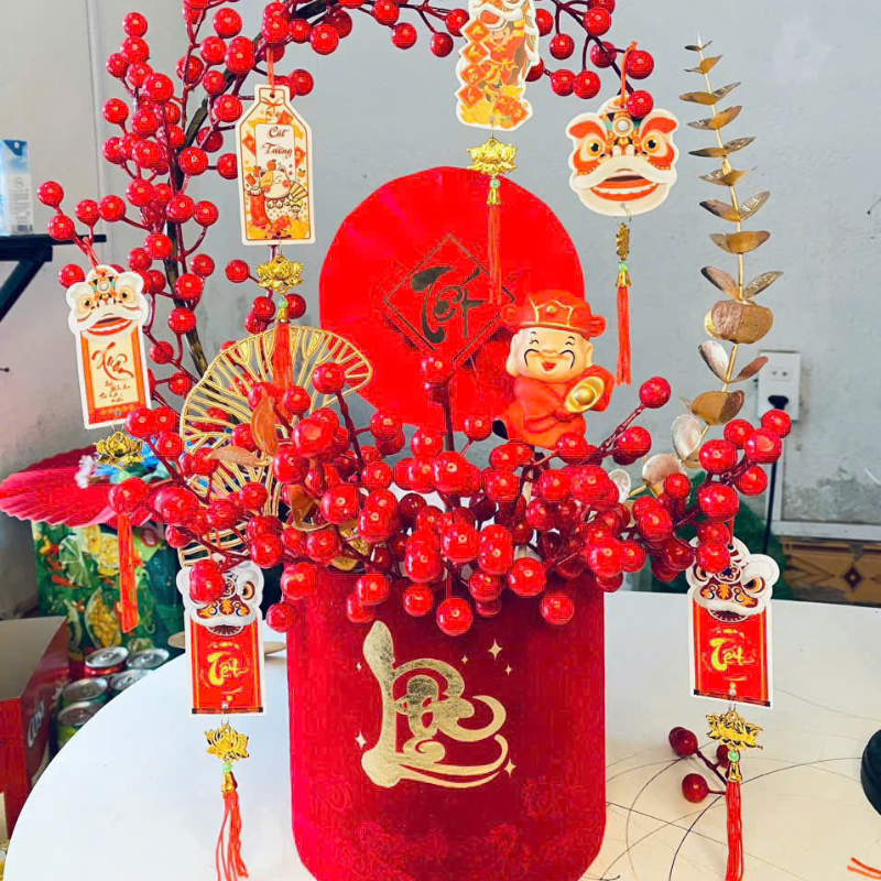 • Cành đỏ xum xuê – tượng trưng tài lộc, phúc khí tràn đầy