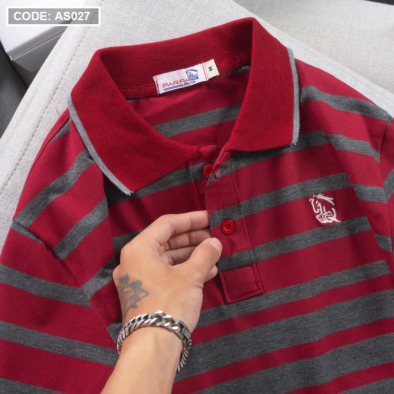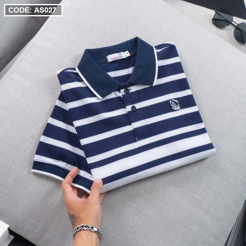 Bán sỉ mua sỉ áo thun polo sọc ngang nam cổ phối bo thêu logo giá rẻ trên toàn quốc