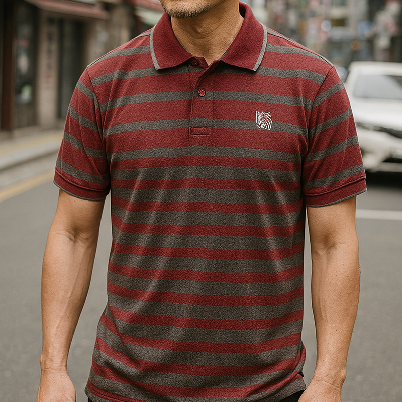 Mua sỉ áo Thun Polo Sọc Ngang Nam Cổ Phối Bo Thêu Logo